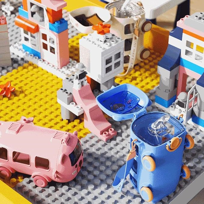 This bus-shaped water bottle is made of environmentally friendly, food-grade PC, ABS, and silicone materials for safety and durability. It comes with a straw for easy sipping.