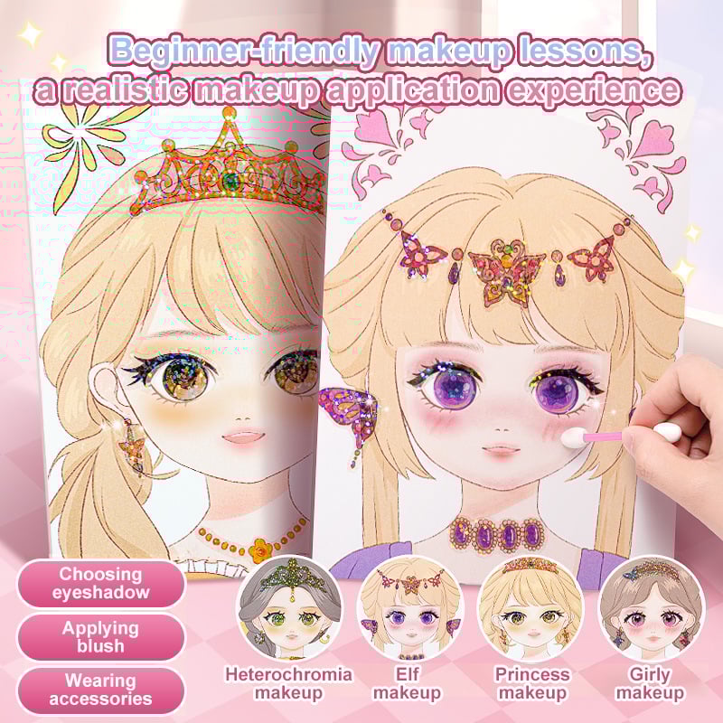 - 🎨 MAKE UP THE FACE-Design enchanting princess looks with reusable sticky-face playbooks.