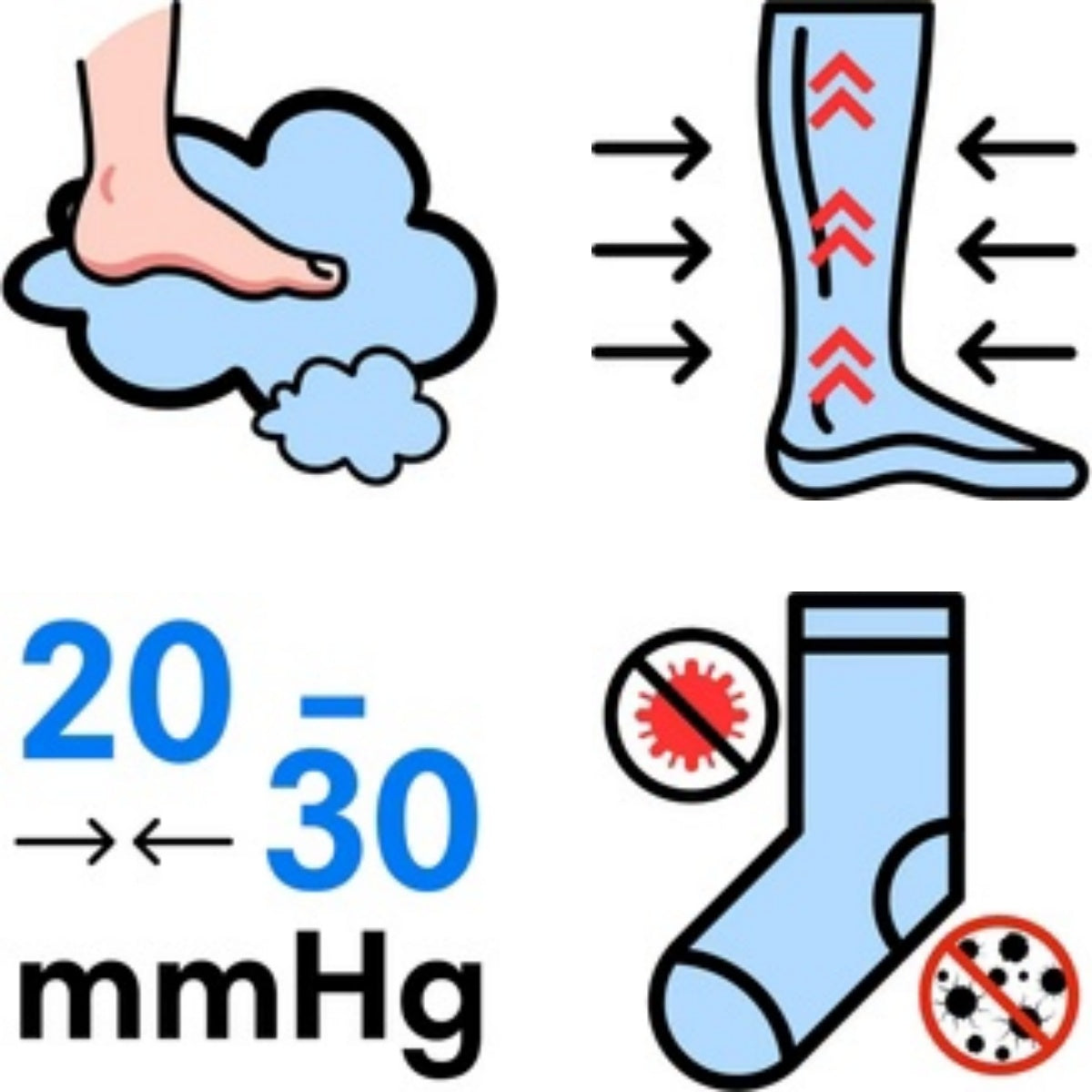 Enriched with powerful antimicrobial ingredients and highly breathable, our stockings start working immediately, saying goodbye to heavy legs and hello to a full day of activity!