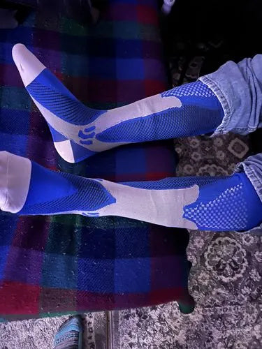 🧦 No more struggling to put on compression stockings. These stockings are designed for those with thicker calves who struggle with traditional compression stockings.