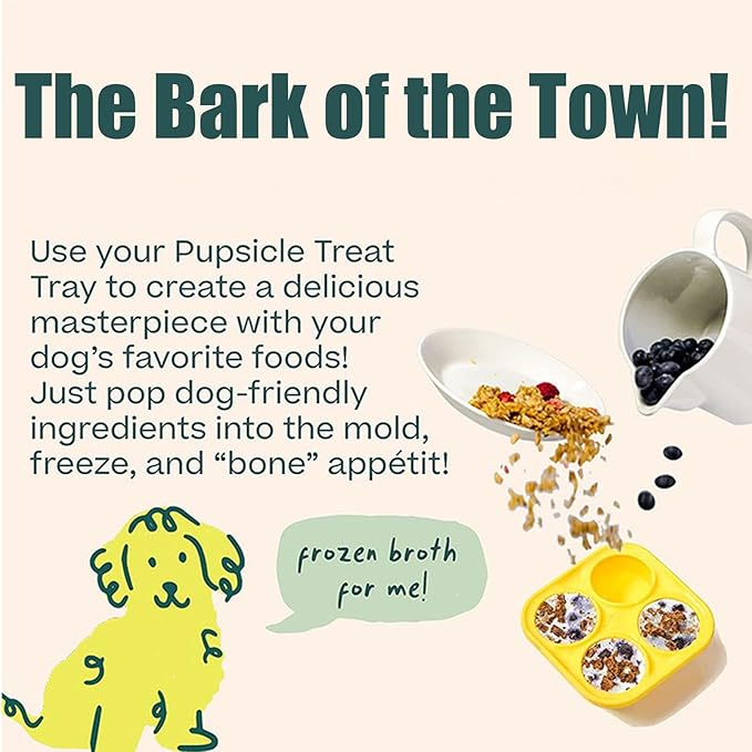 🐶 The tray can hold four different flavors of treats at once. 🐾💛 You can use this to make your dog's favorite food, especially suitable for frozen wet food. Fill the molds with peanut butter, broth, yogurt, etc., and let your creativity run wild to make delicious treats for your beloved dog! 💕